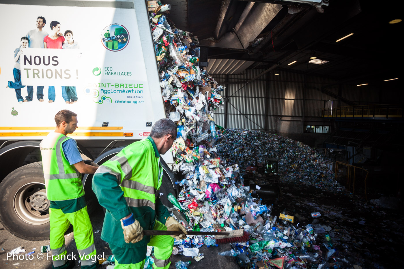 Au centre de tri Kerval Centre Armor de Ploufragan, 25 000 tonnes de déchets sont traitées chaque année. Des opératrices qualifiées réalisent une caractérisation minutieuse pour identifier les matières recyclables et pister les erreurs de tri, tandis que 26 collaborateurs travaillent quotidiennement sur les chaînes de production. Le trommel, premier filtre imposé aux déchets, trie par taille et sépare les plastiques, papiers et cartons. Les chaînes de tri manuel affinent ensuite cette séparation des matières.